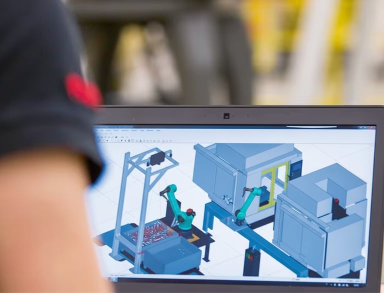 Diseñamos soluciones con cobots y robots industriales que se integran sin problemas con sus sistemas actuales.